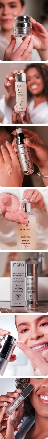 Os Kits foram desenvolvidos a partir de um entendimento de que era impossível ter resultados satisfatórios e uma quantidade de ativos interessante em um único produto, por isso os produtos MOBA foram pensados para se complementarem e os resultados de Pele Perfeita em 4 semanas só é garantido a partir da utilização correta de todos os produtos de cada kit.